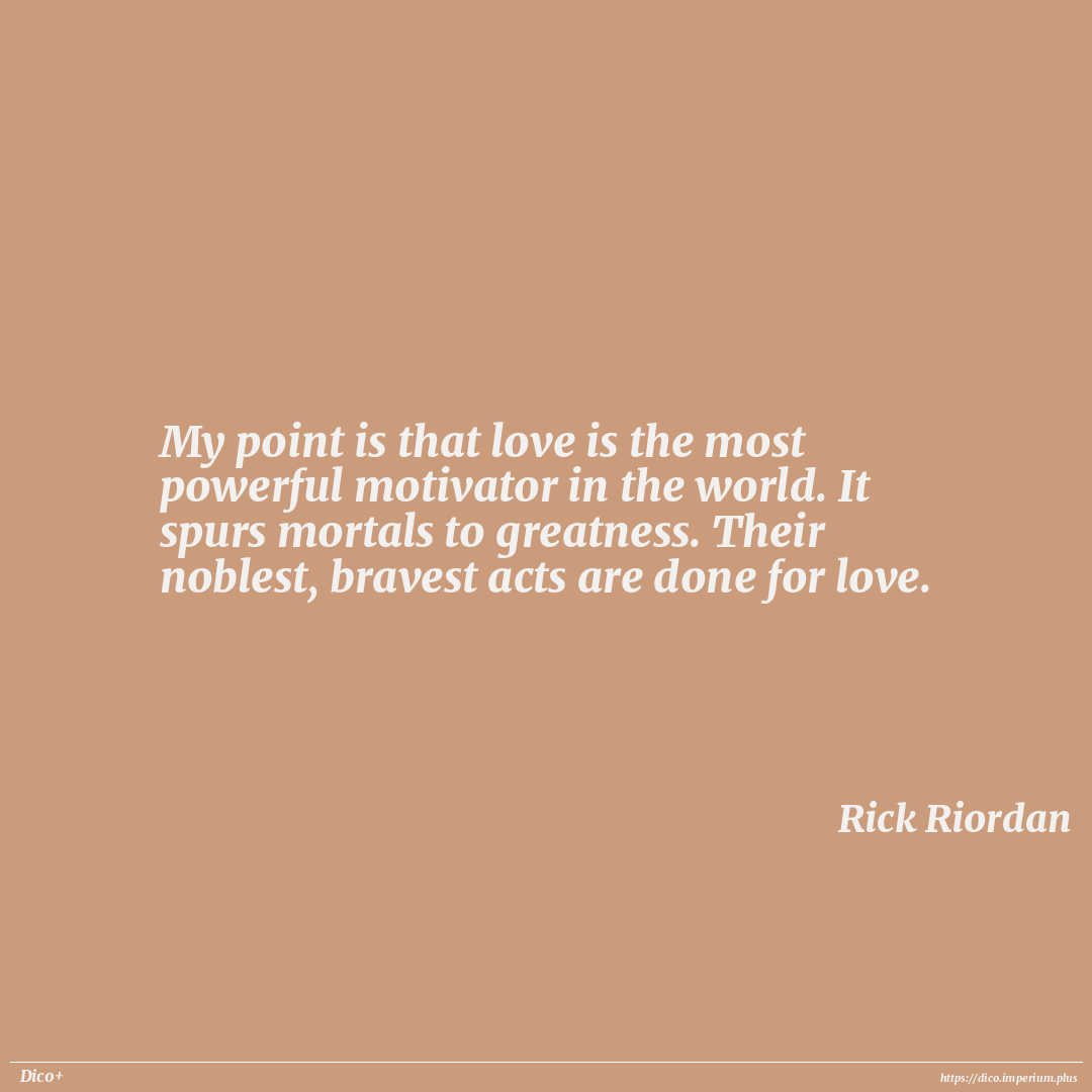 My point is that love is the most powerful motivator in the world. It spurs mortals to greatness. Their noblest, bravest acts are done for love.
