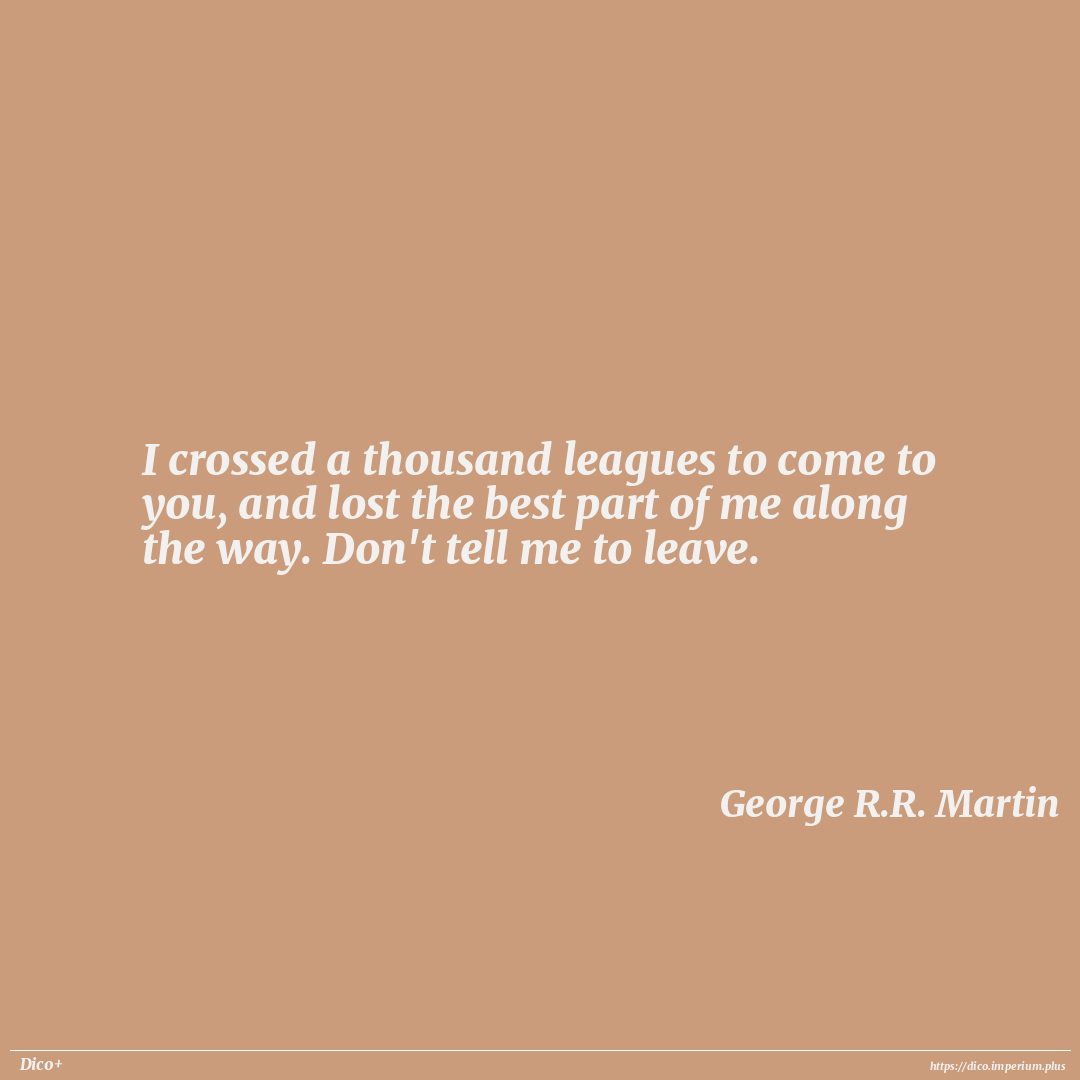 I crossed a thousand leagues to come to you, and lost the best part of me along the way. Don't tell me to leave.