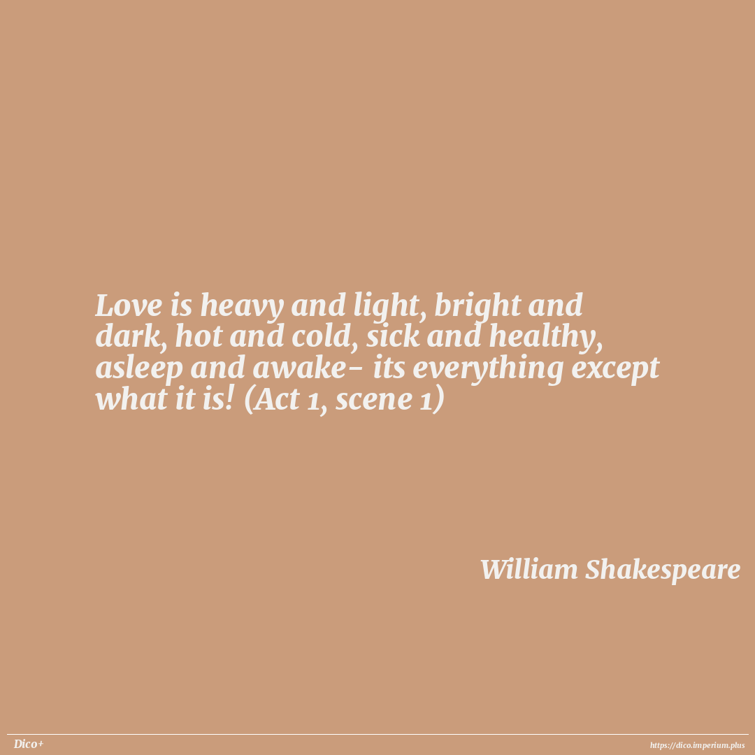 Love is heavy and light, bright and dark, hot and cold, sick and healthy, asleep and awake- its everything except what it is! (Act 1, scene 1)