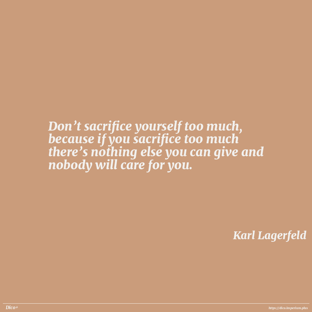 Don’t sacrifice yourself too much, because if you sacrifice too much there’s nothing else you can give and nobody will care for you.