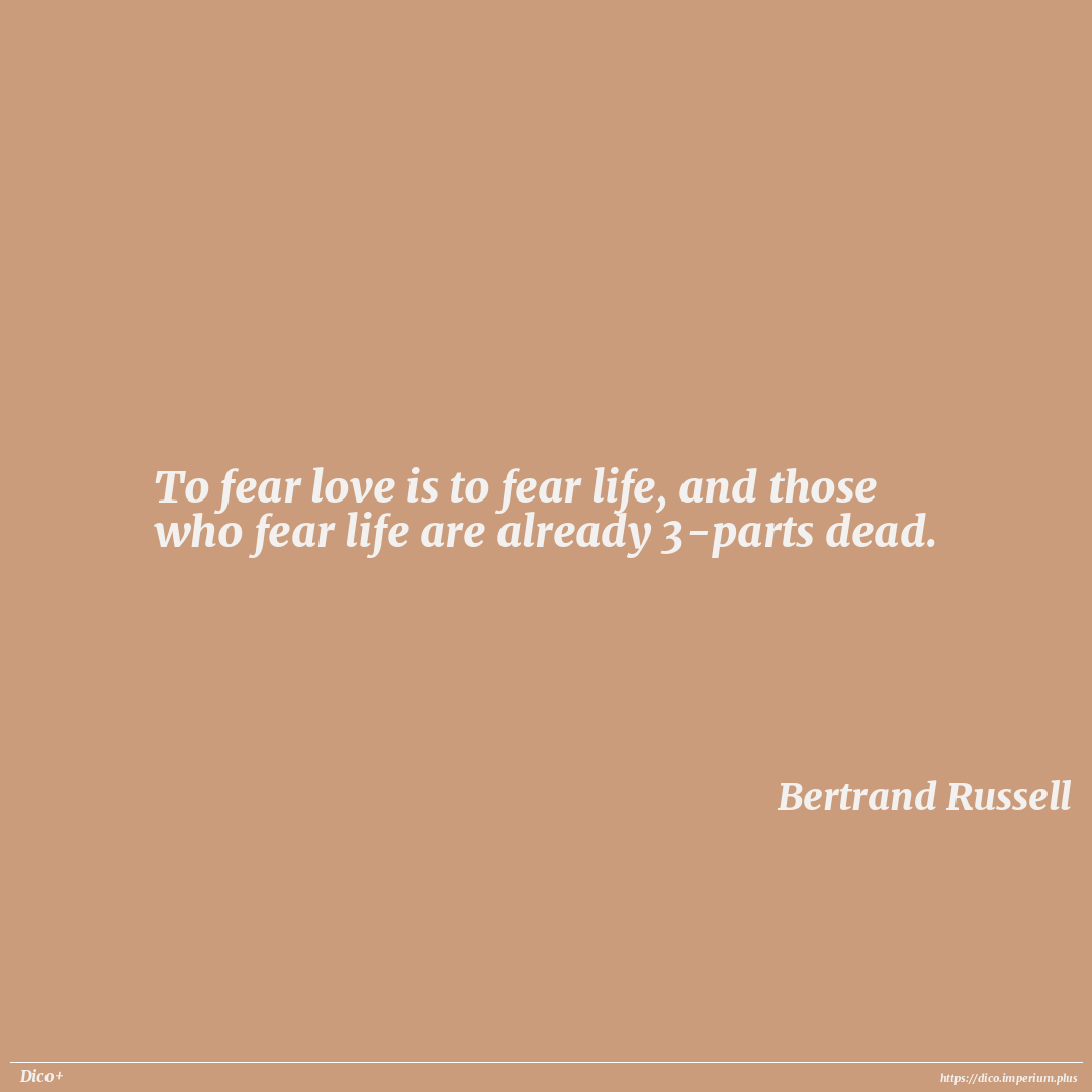 To fear love is to fear life, and those who fear life are already 3-parts dead.