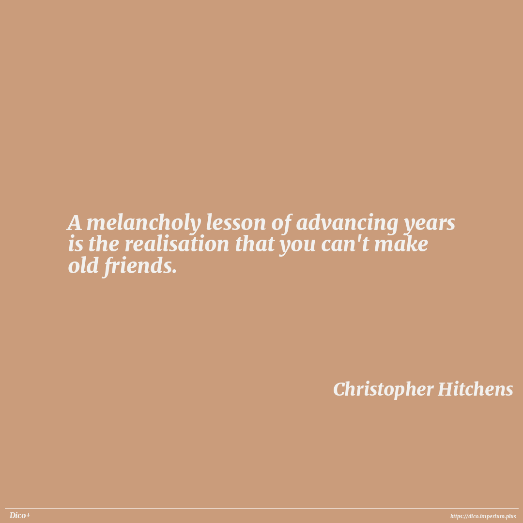 A melancholy lesson of advancing years is the realisation that you can't make old friends.