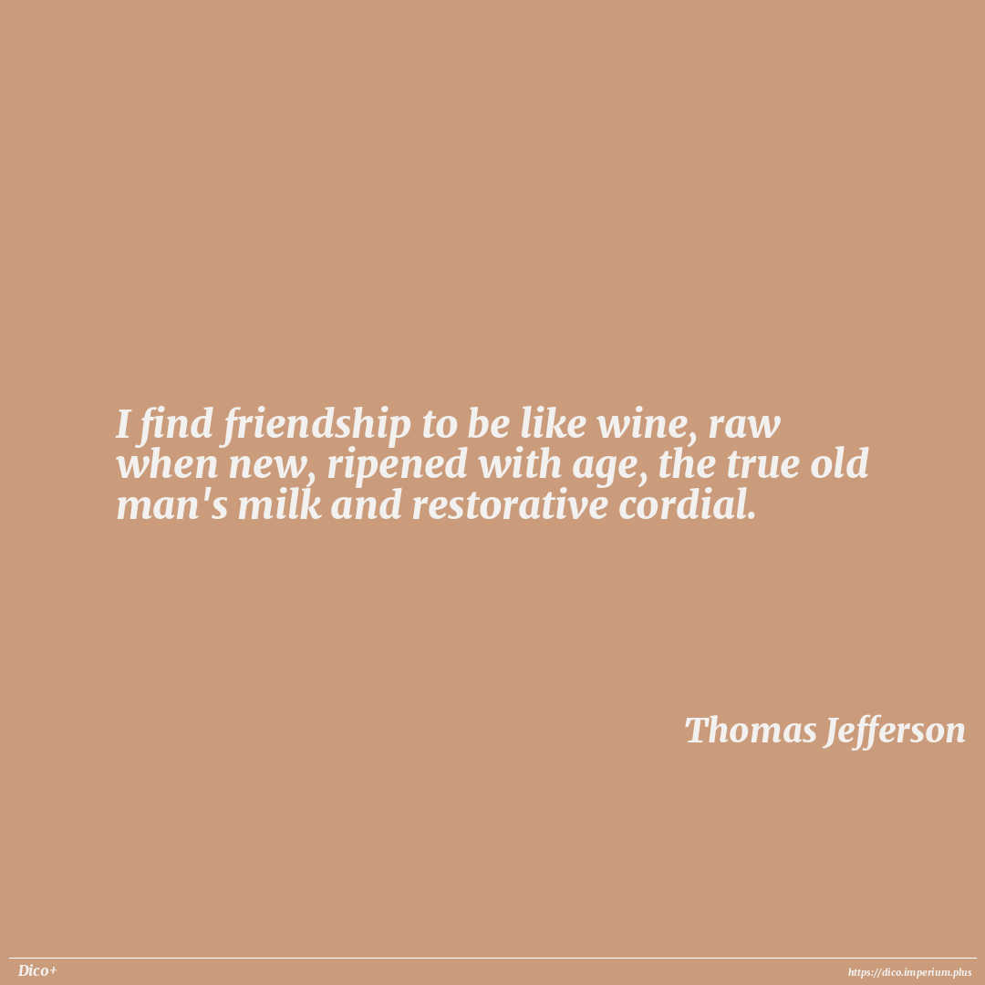 I find friendship to be like wine, raw when new, ripened with age, the true old man's milk and restorative cordial.