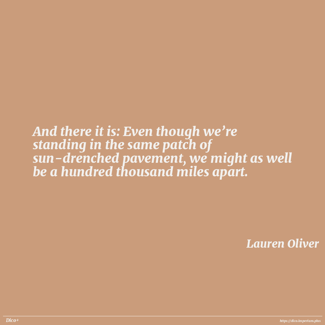 And there it is: Even though we’re standing in the same patch of sun-drenched pavement, we might as well be a hundred thousand miles apart.