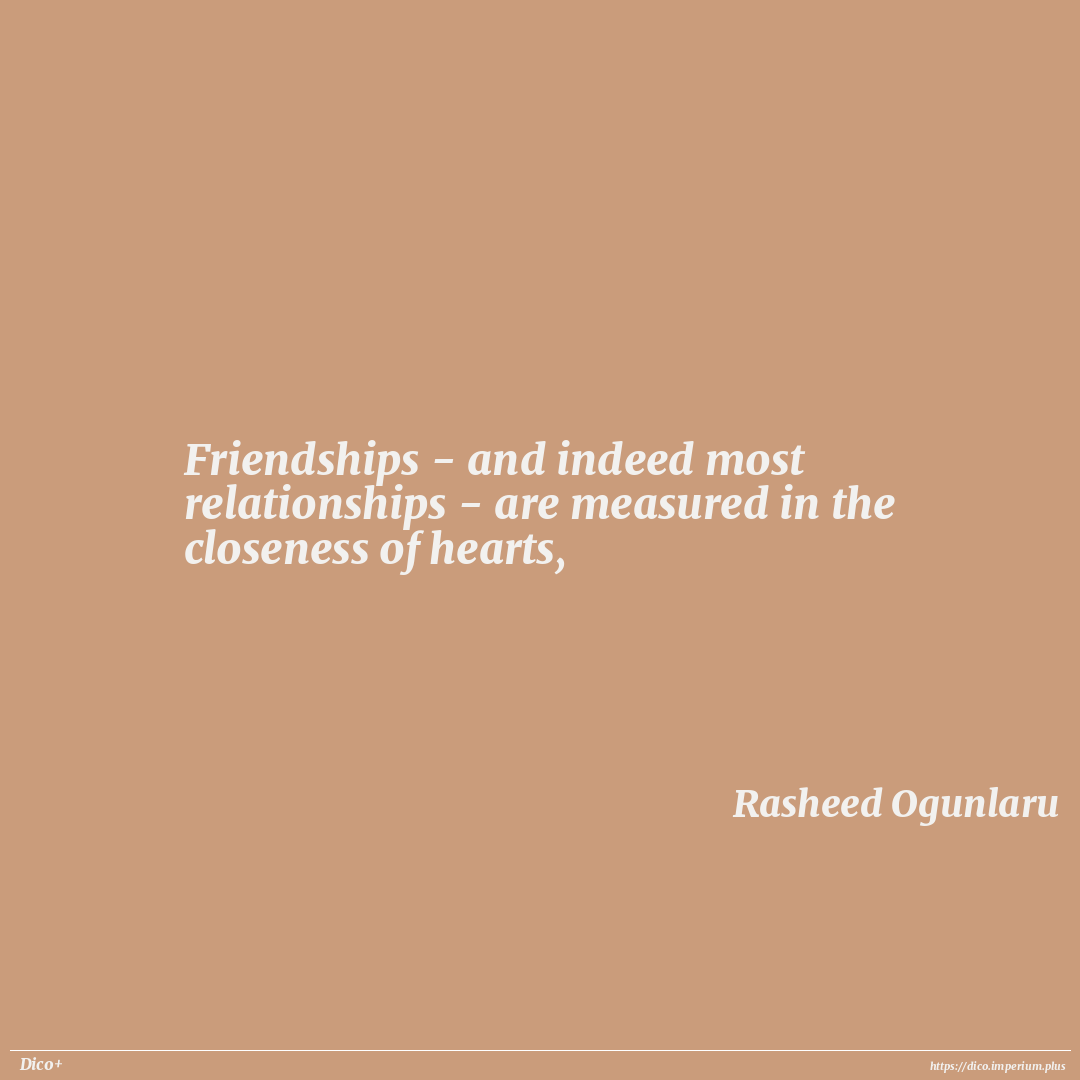 Friendships - and indeed most relationships - are measured in the closeness of hearts,