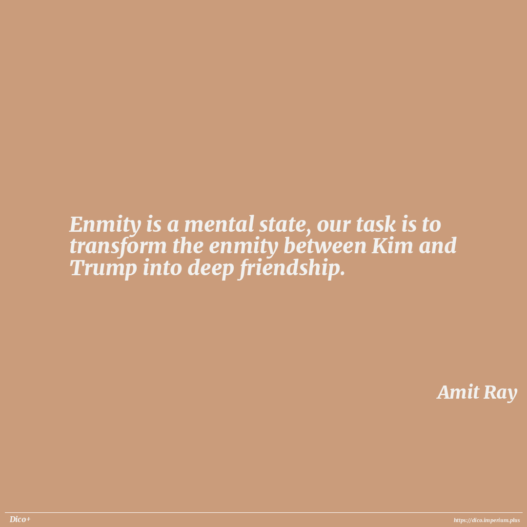 Enmity is a mental state, our task is to transform the enmity between Kim and Trump into deep friendship.