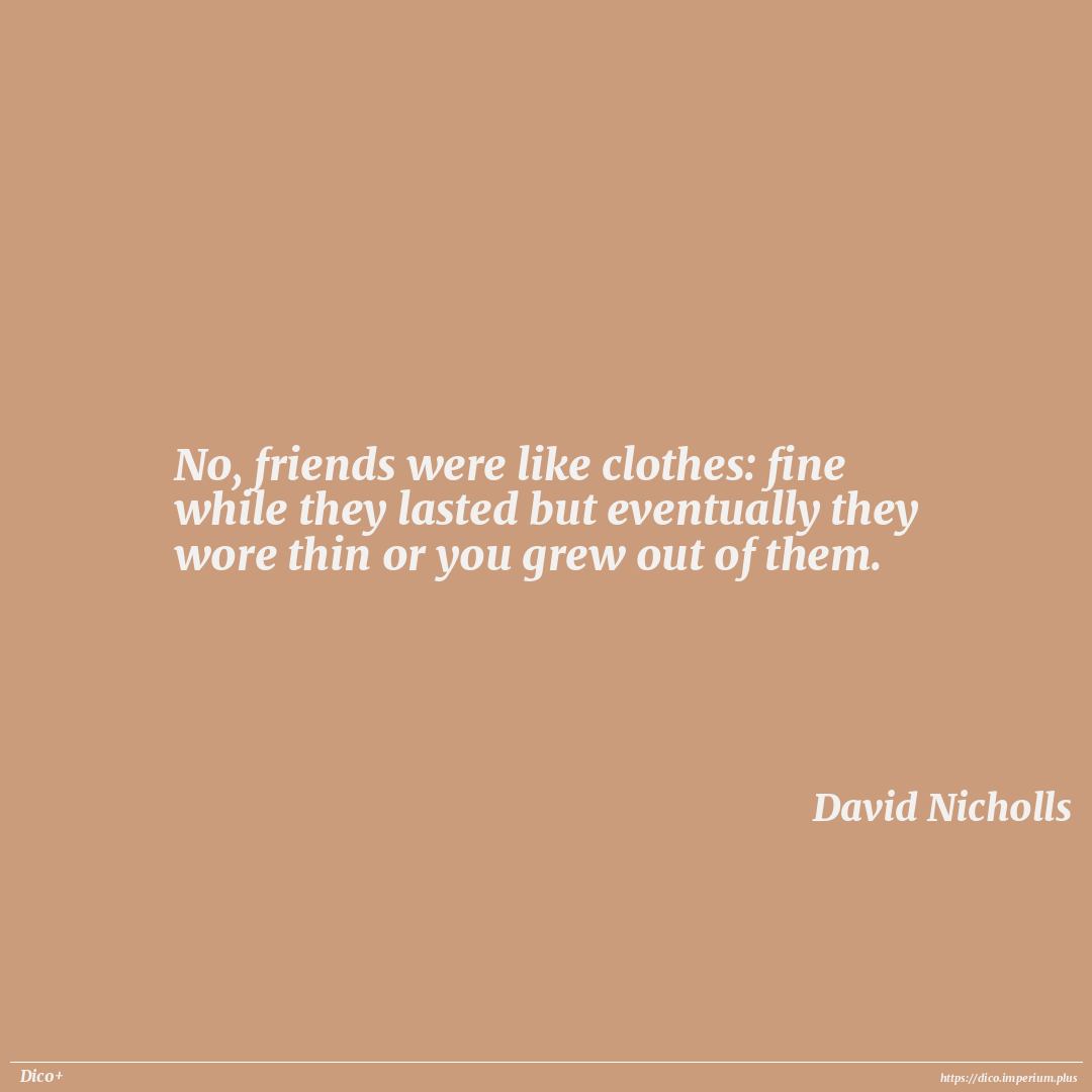 No, friends were like clothes: fine while they lasted but eventually they wore thin or you grew out of them.
