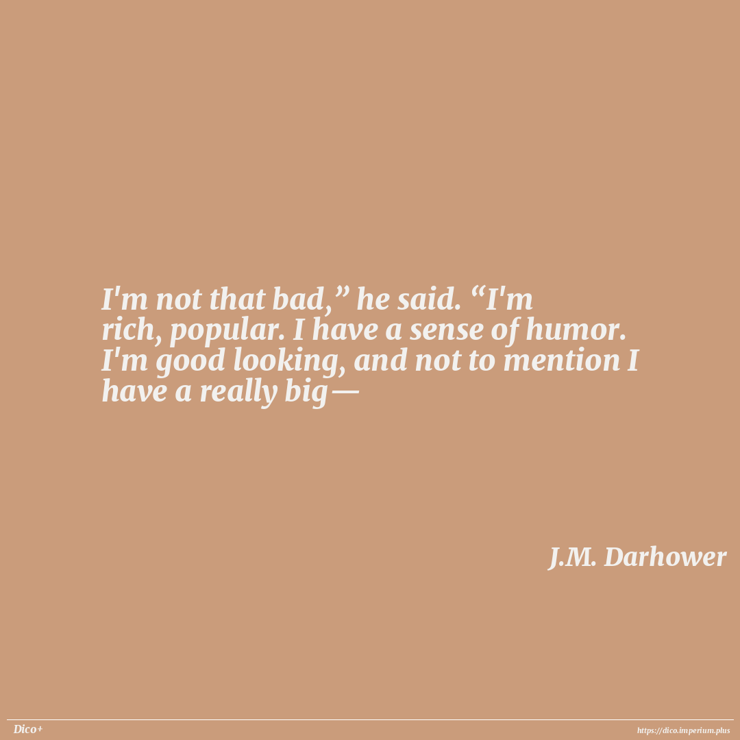 I'm not that bad,” he said. “I'm rich, popular. I have a sense of humor. I'm good looking, and not to mention I have a really big—