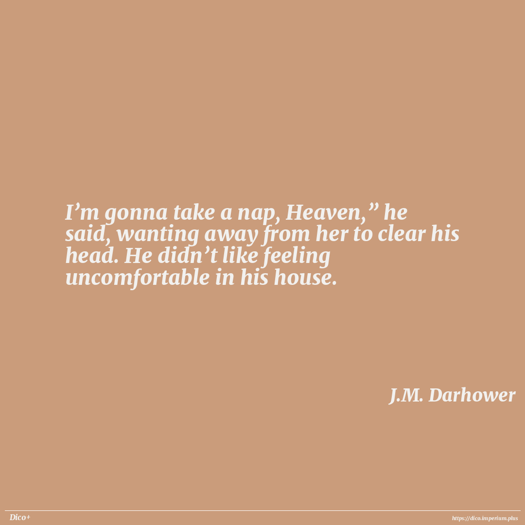 I’m gonna take a nap, Heaven,” he said, wanting away from her to clear his head. He didn’t like feeling uncomfortable in his house.