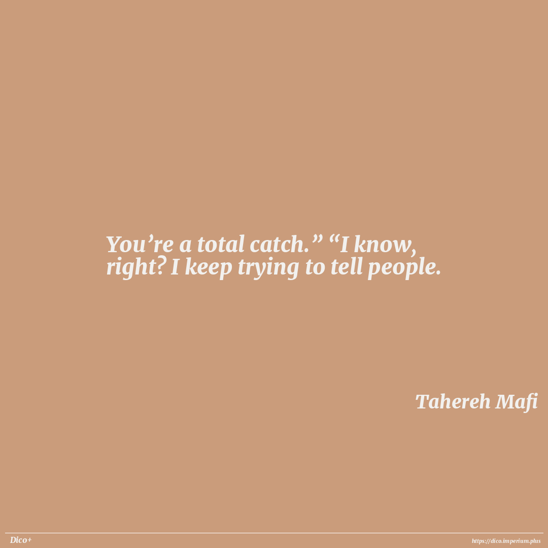 You’re a total catch.” “I know, right? I keep trying to tell people.