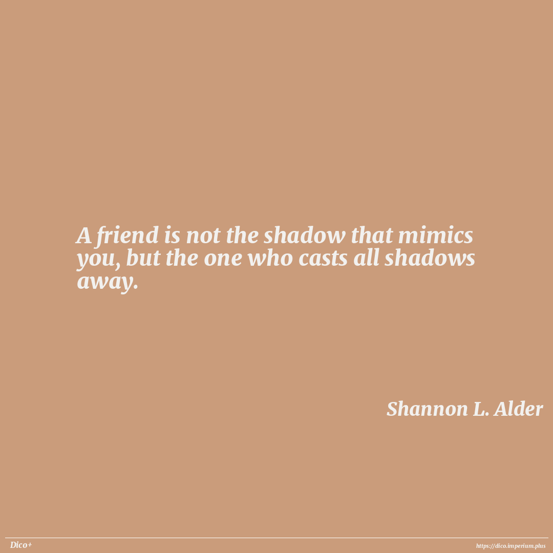 A friend is not the shadow that mimics you, but the one who casts all shadows away.