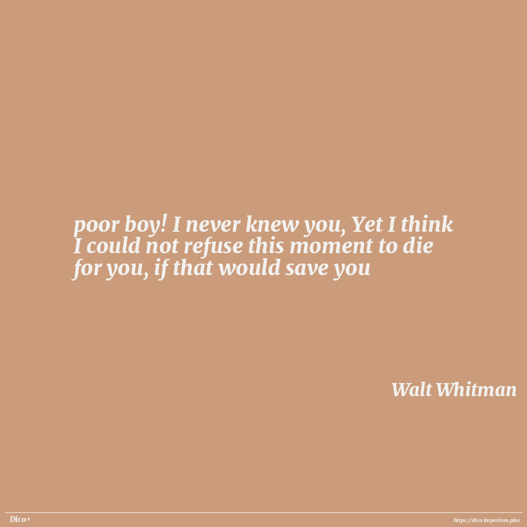poor boy! I never knew you, Yet I think I could not refuse this moment to die for you, if that would save you
