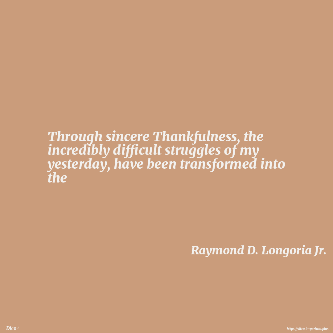Through sincere Thankfulness, the incredibly difficult struggles of my yesterday, have been transformed into the