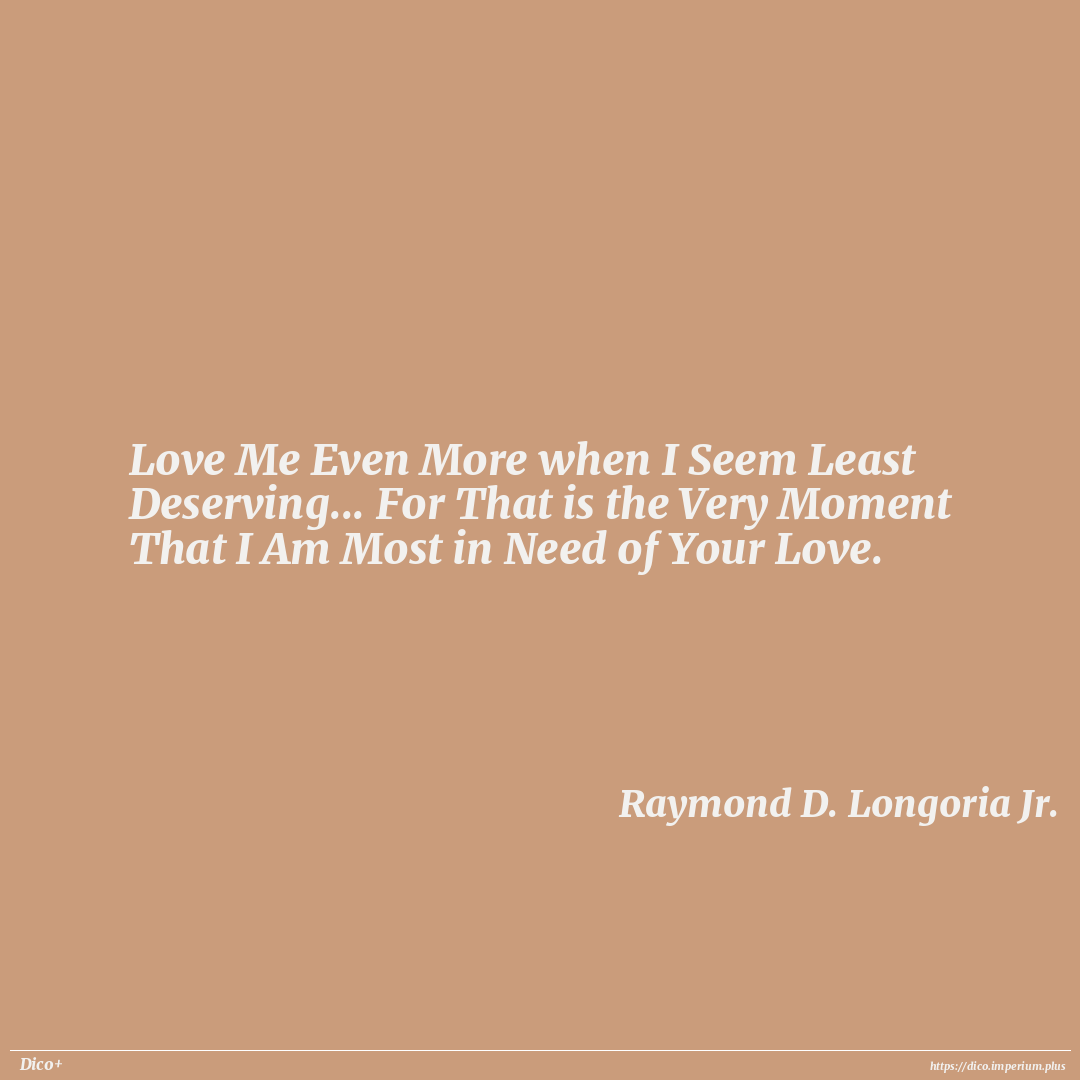 Love Me Even More when I Seem Least Deserving... For That is the Very Moment That I Am Most in Need of Your Love.