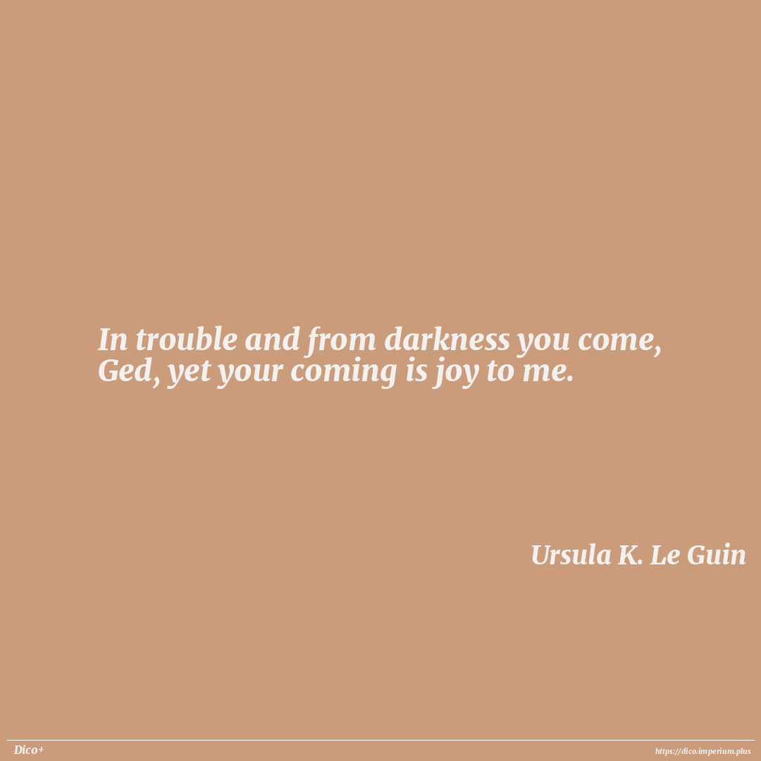 In trouble and from darkness you come, Ged, yet your coming is joy to me.