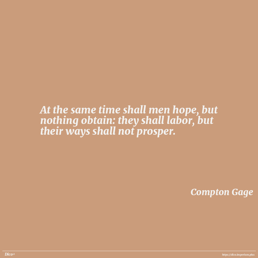 At the same time shall men hope, but nothing obtain: they shall labor, but their ways shall not prosper.