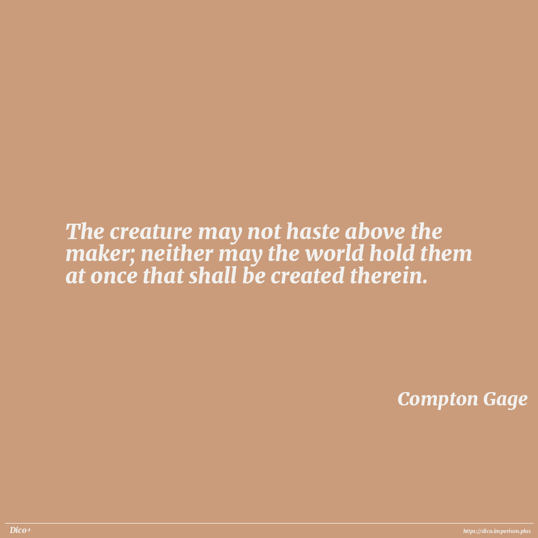 The creature may not haste above the maker; neither may the world hold them at once that shall be created therein.