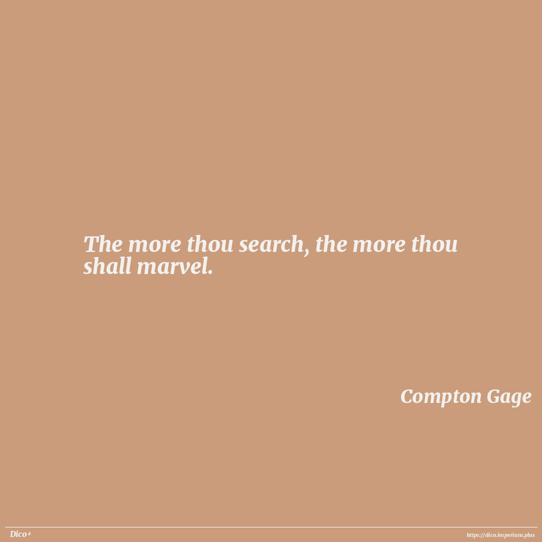 The more thou search, the more thou shall marvel.