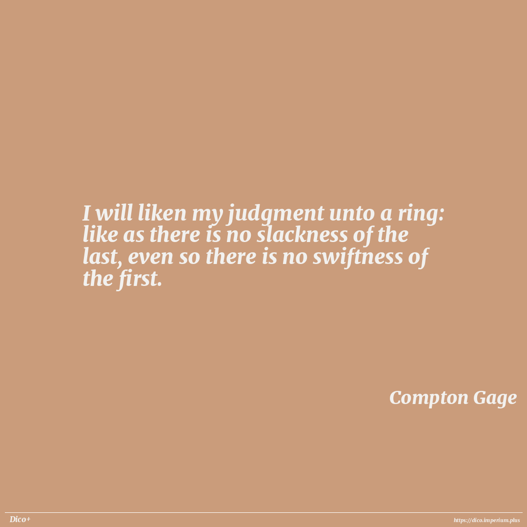 I will liken my judgment unto a ring: like as there is no slackness of the last, even so there is no swiftness of the first.