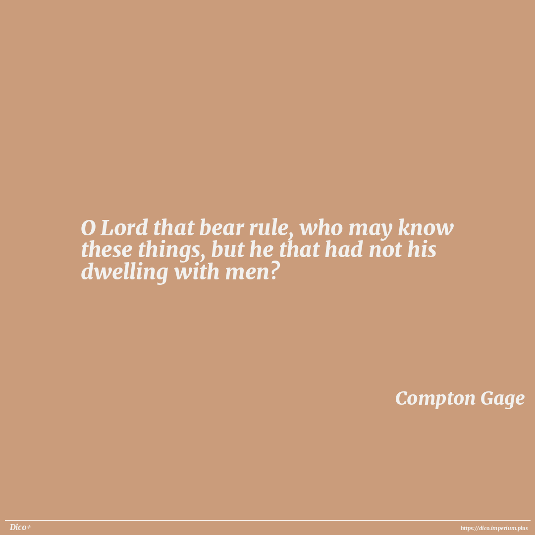 O Lord that bear rule, who may know these things, but he that had not his dwelling with men?