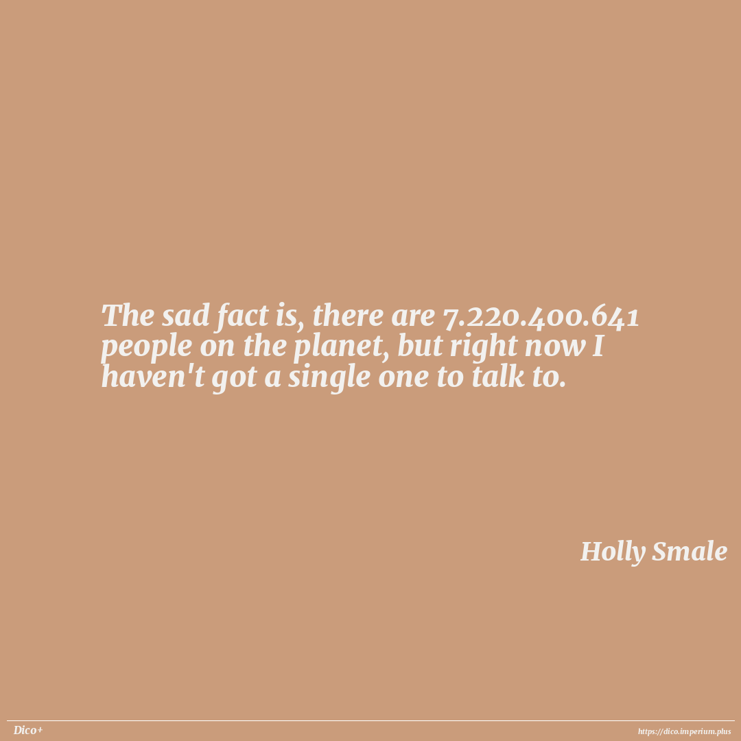 The sad fact is, there are 7.220.400.641 people on the planet, but right now I haven't got a single one to talk to.