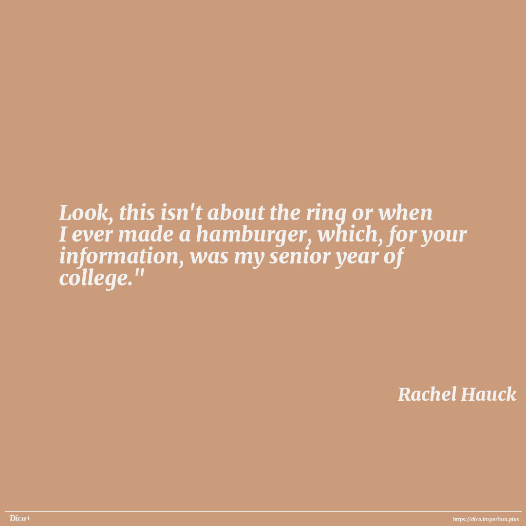 Look, this isn't about the ring or when I ever made a hamburger, which, for your information, was my senior year of college."