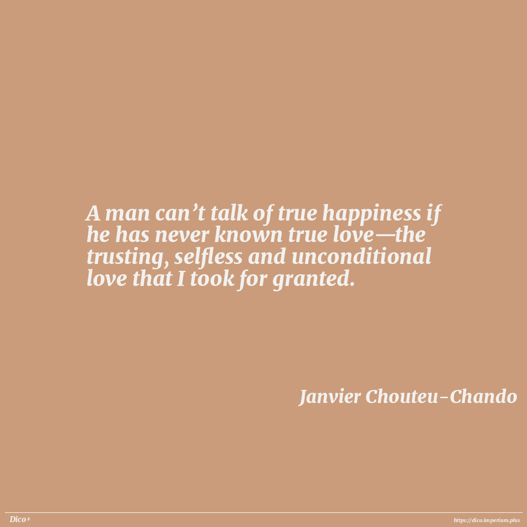 A man can’t talk of true happiness if he has never known true love—the trusting, selfless and unconditional love that I took for granted.
