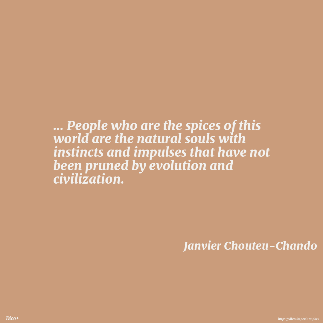 ... People who are the spices of this world are the natural souls with instincts and impulses that have not been pruned by evolution and civilization.