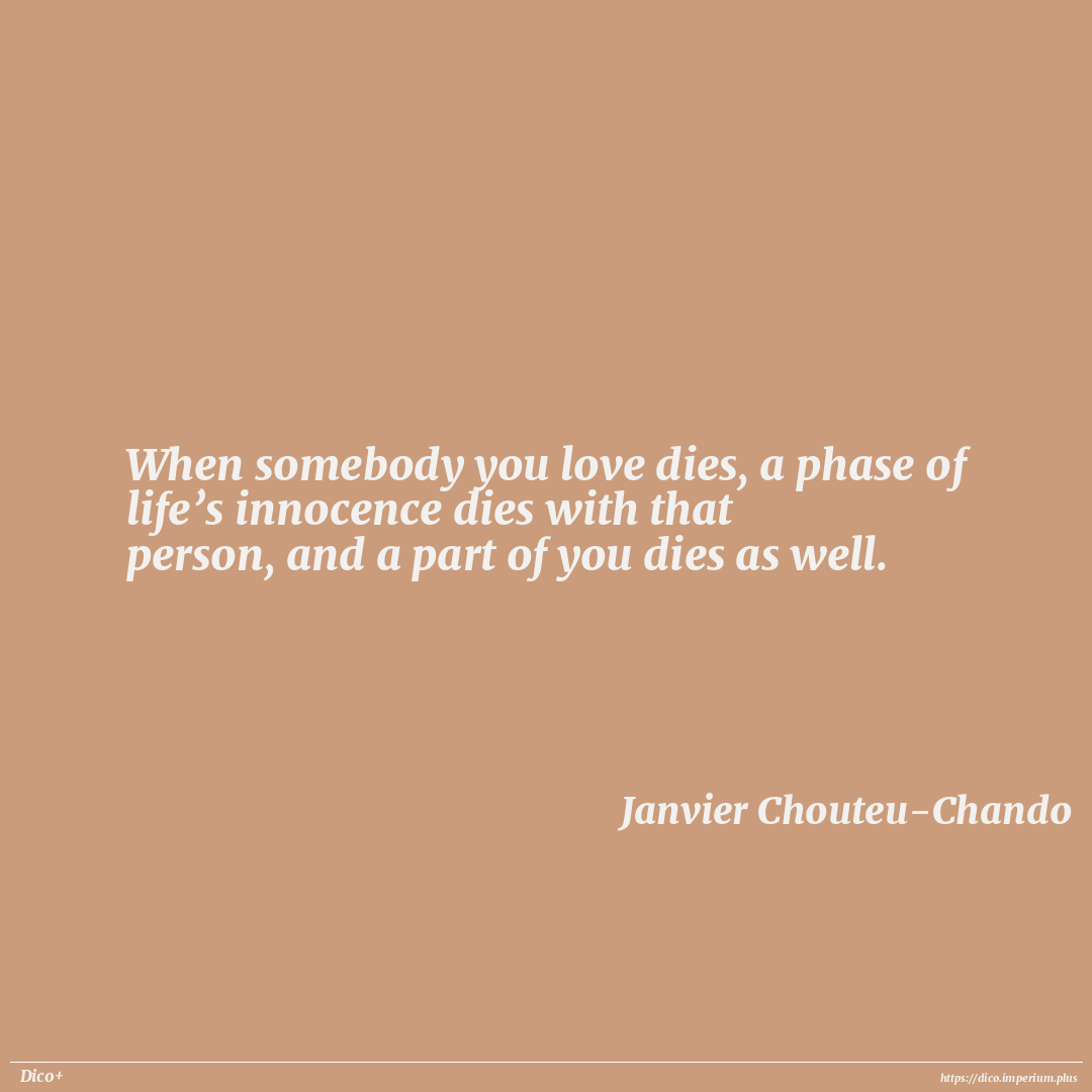 When somebody you love dies, a phase of life’s innocence dies with that person, and a part of you dies as well.