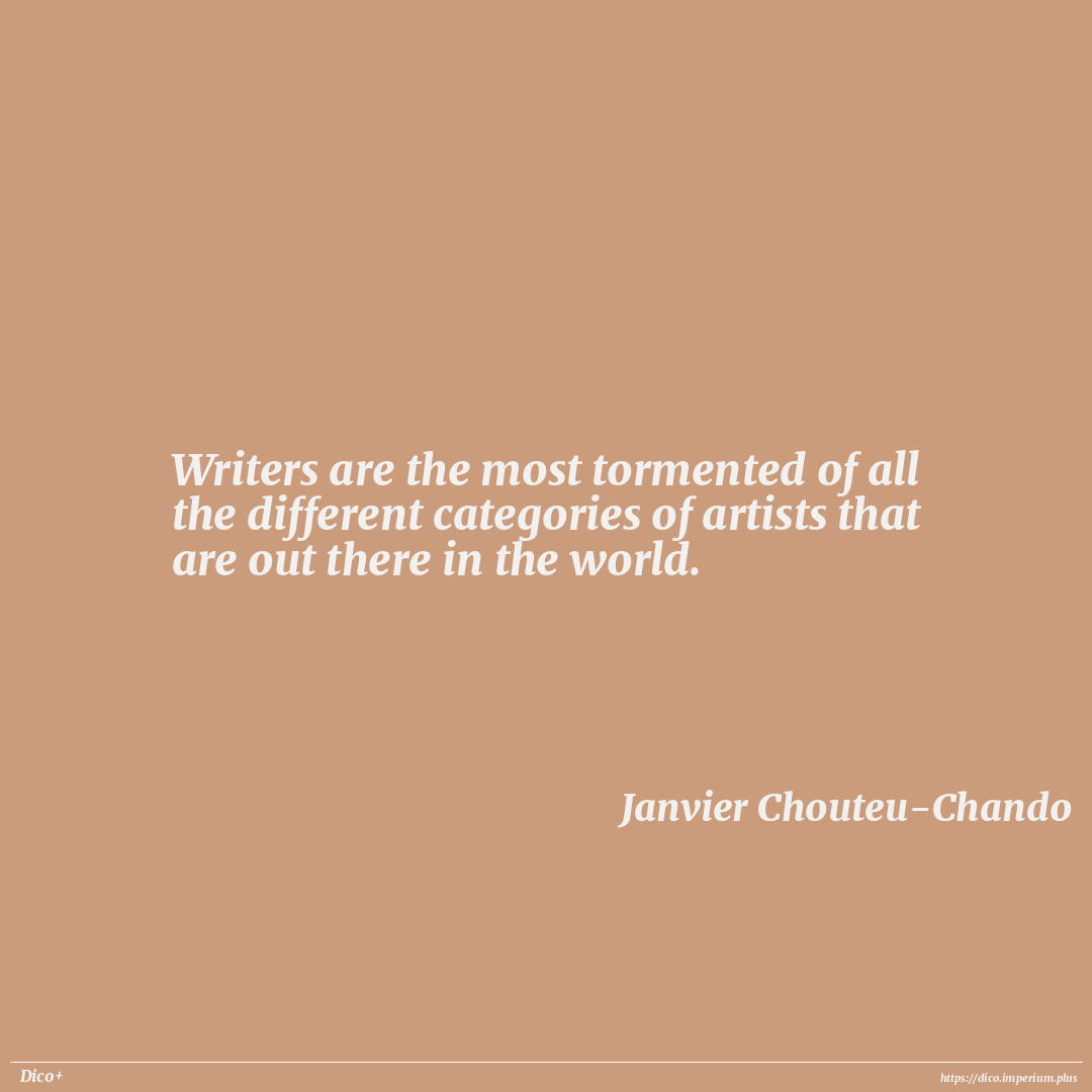 Writers are the most tormented of all the different categories of artists that are out there in the world.