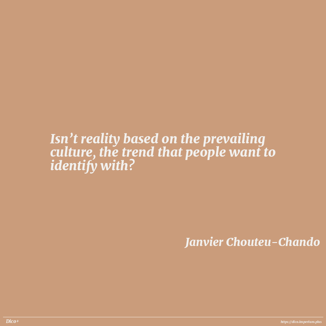 Isn’t reality based on the prevailing culture, the trend that people want to identify with?