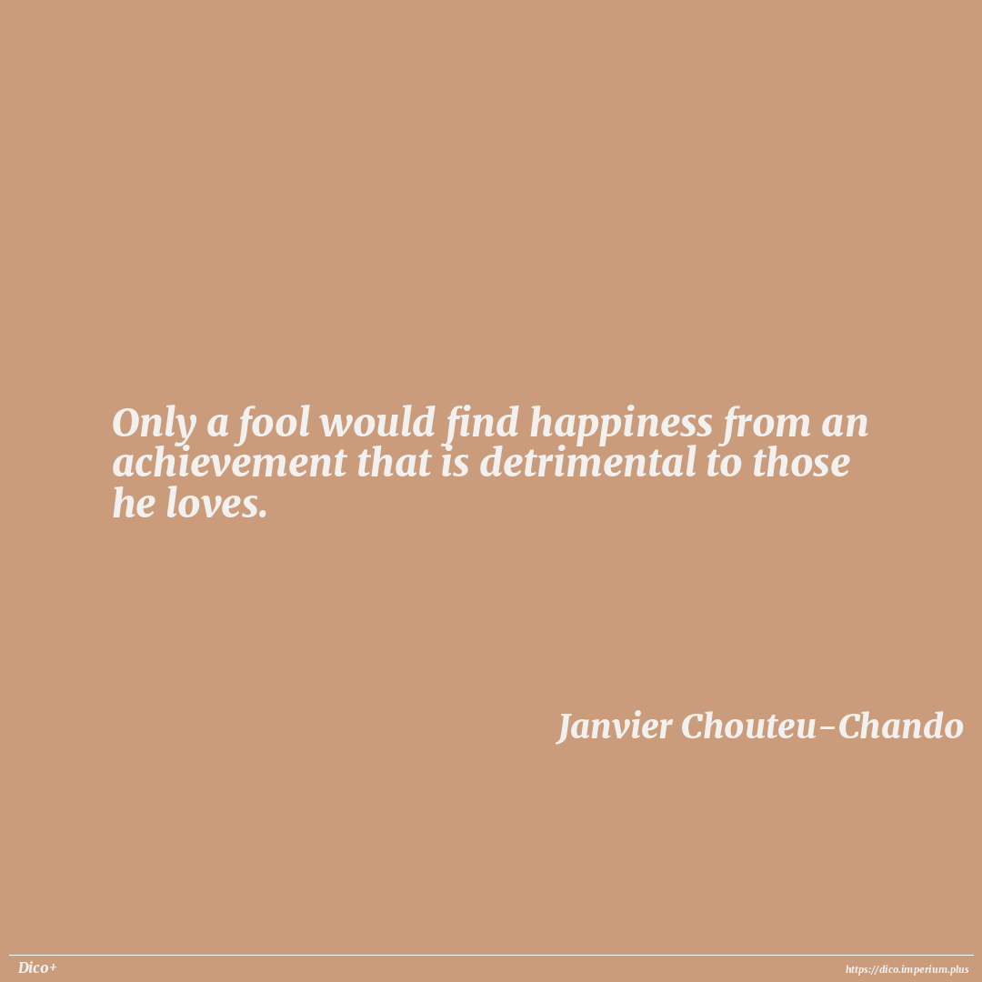 Only a fool would find happiness from an achievement that is detrimental to those he loves.