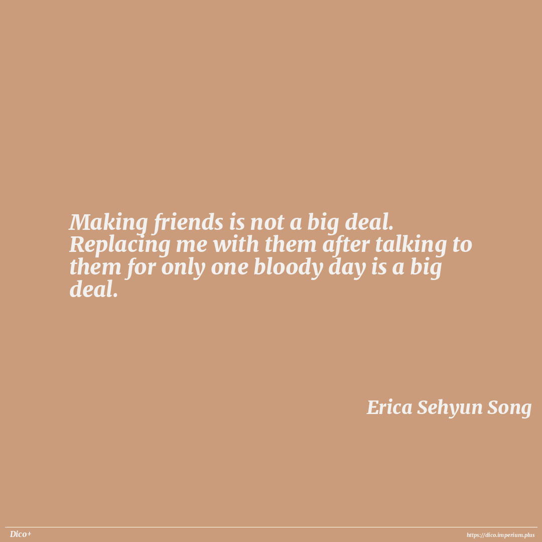 Making friends is not a big deal. Replacing me with them after talking to them for only one bloody day is a big deal.