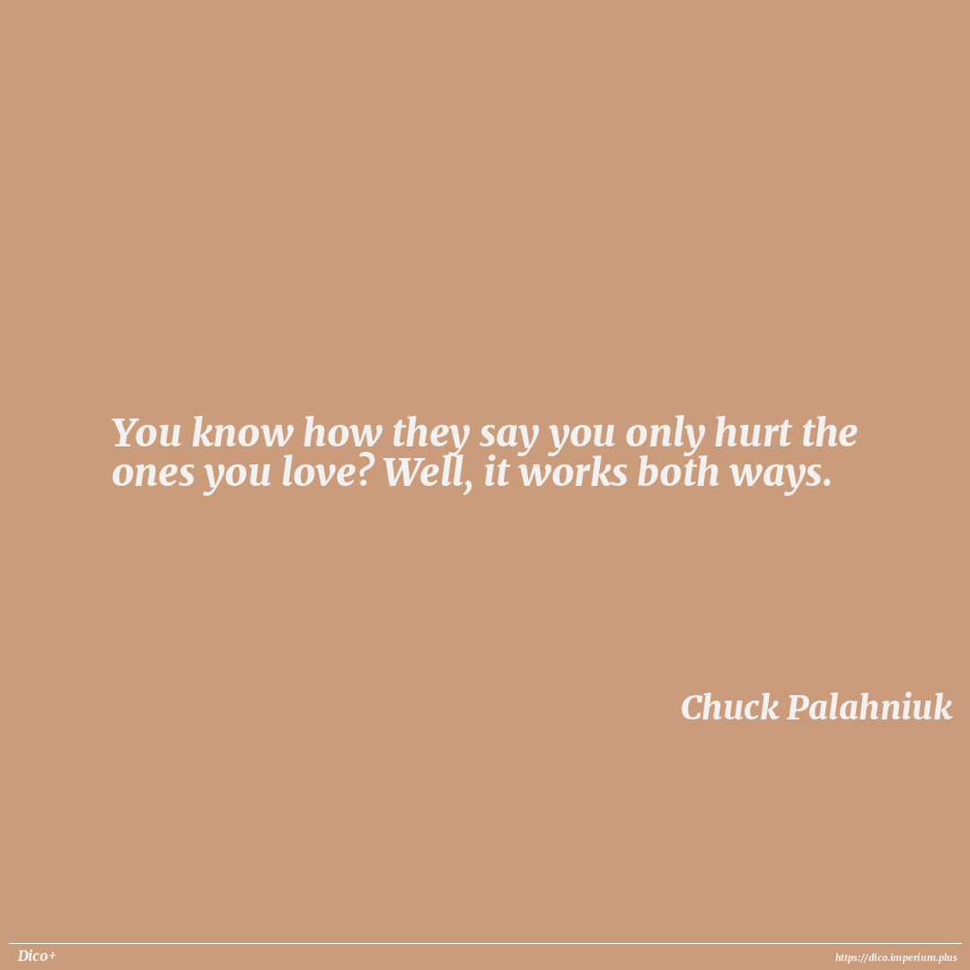 You know how they say you only hurt the ones you love? Well, it works both ways.