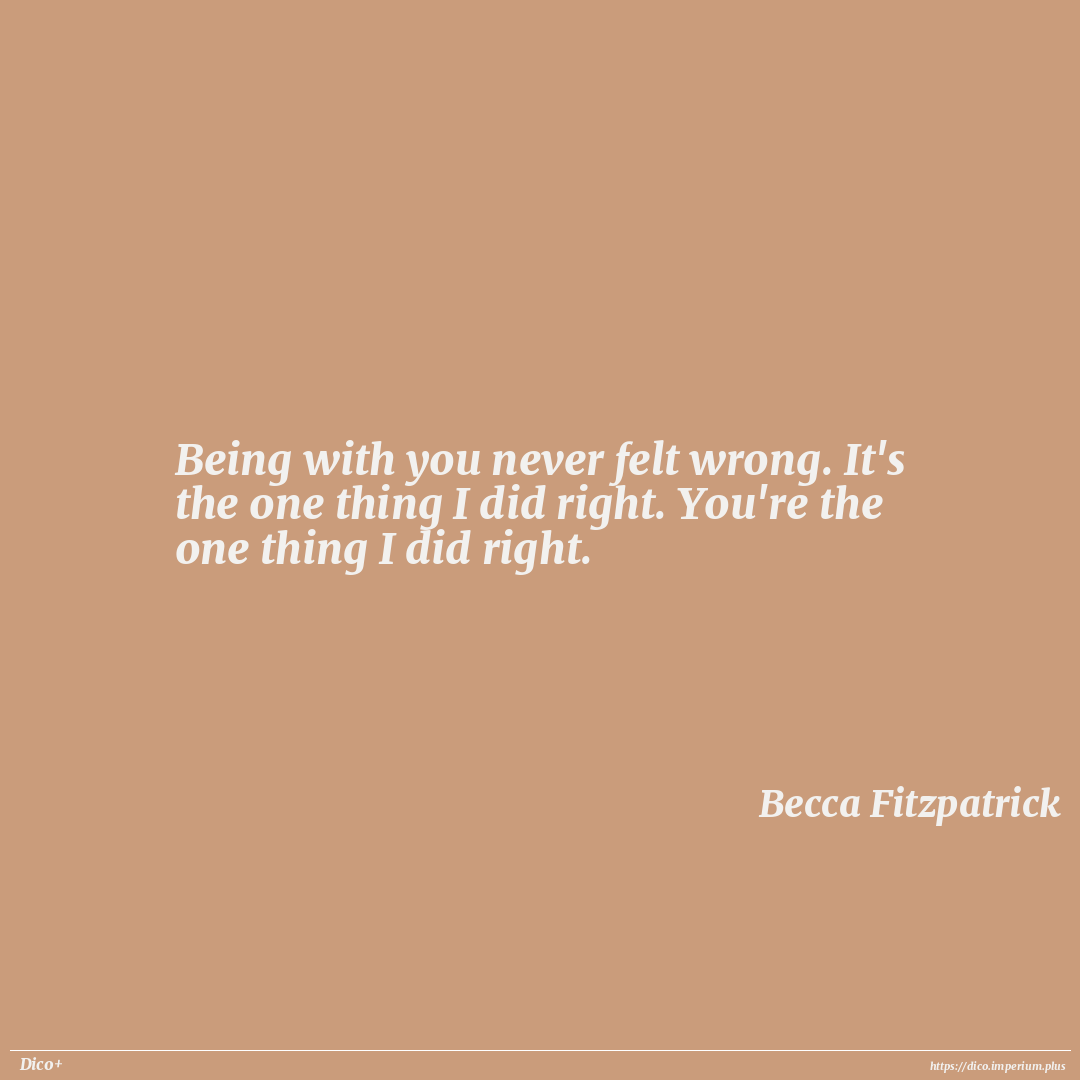 Being with you never felt wrong. It's the one thing I did right. You're the one thing I did right.