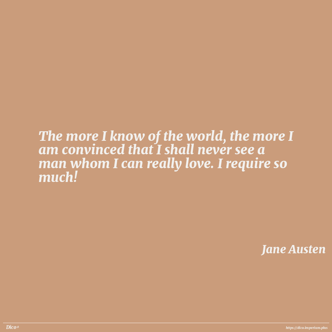 The more I know of the world, the more I am convinced that I shall never see a man whom I can really love. I require so much!