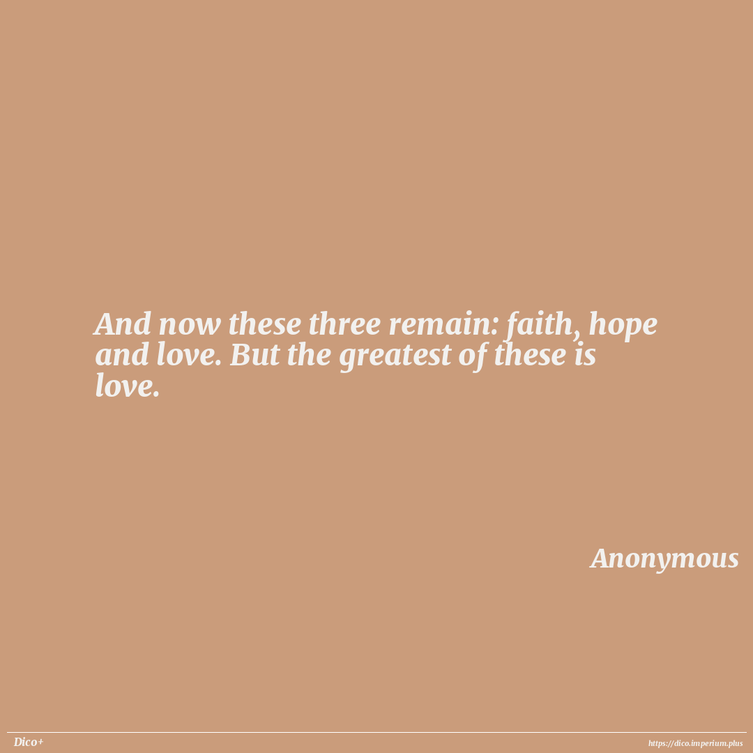 And now these three remain: faith, hope and love. But the greatest of these is love.