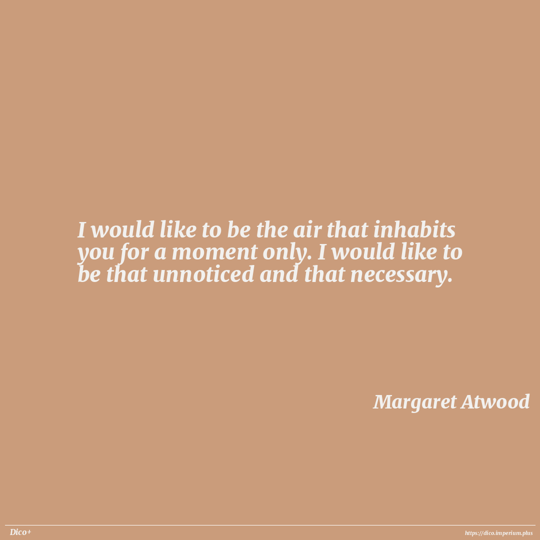 I would like to be the air that inhabits you for a moment only. I would like to be that unnoticed and that necessary.