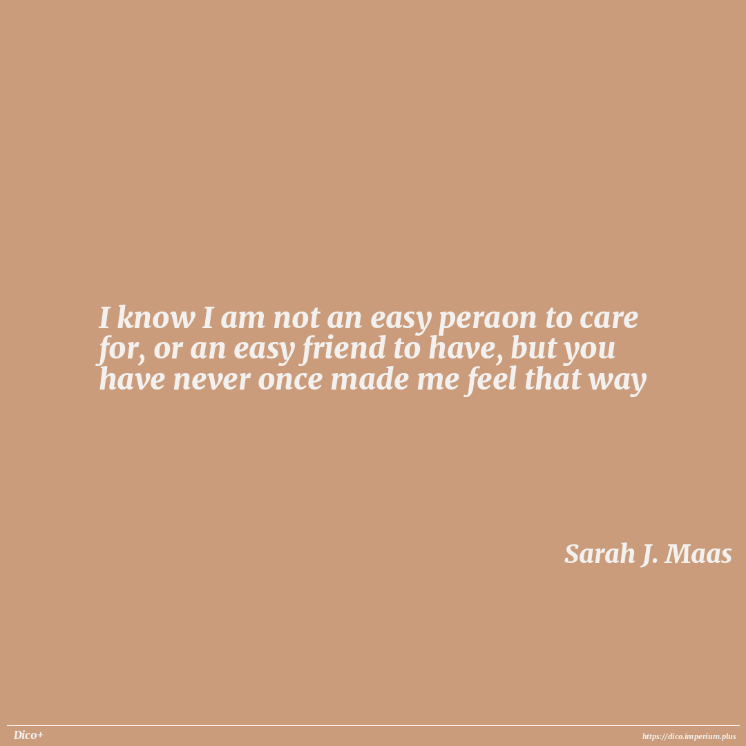I know I am not an easy peraon to care for, or an easy friend to have, but you have never once made me feel that way