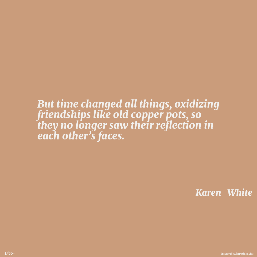 But time changed all things, oxidizing friendships like old copper pots, so they no longer saw their reflection in each other’s faces.