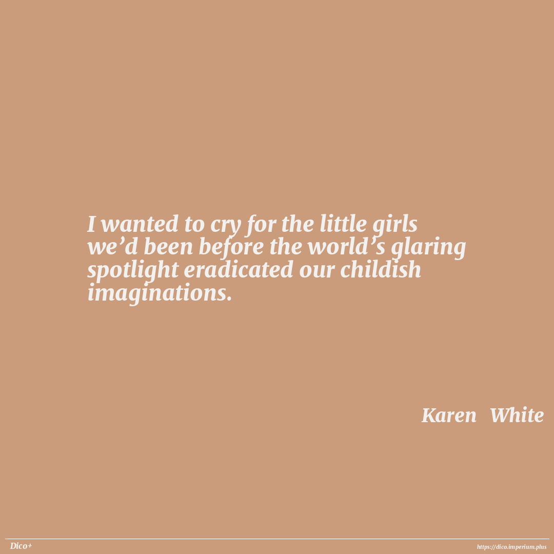 I wanted to cry for the little girls we’d been before the world’s glaring spotlight eradicated our childish imaginations.
