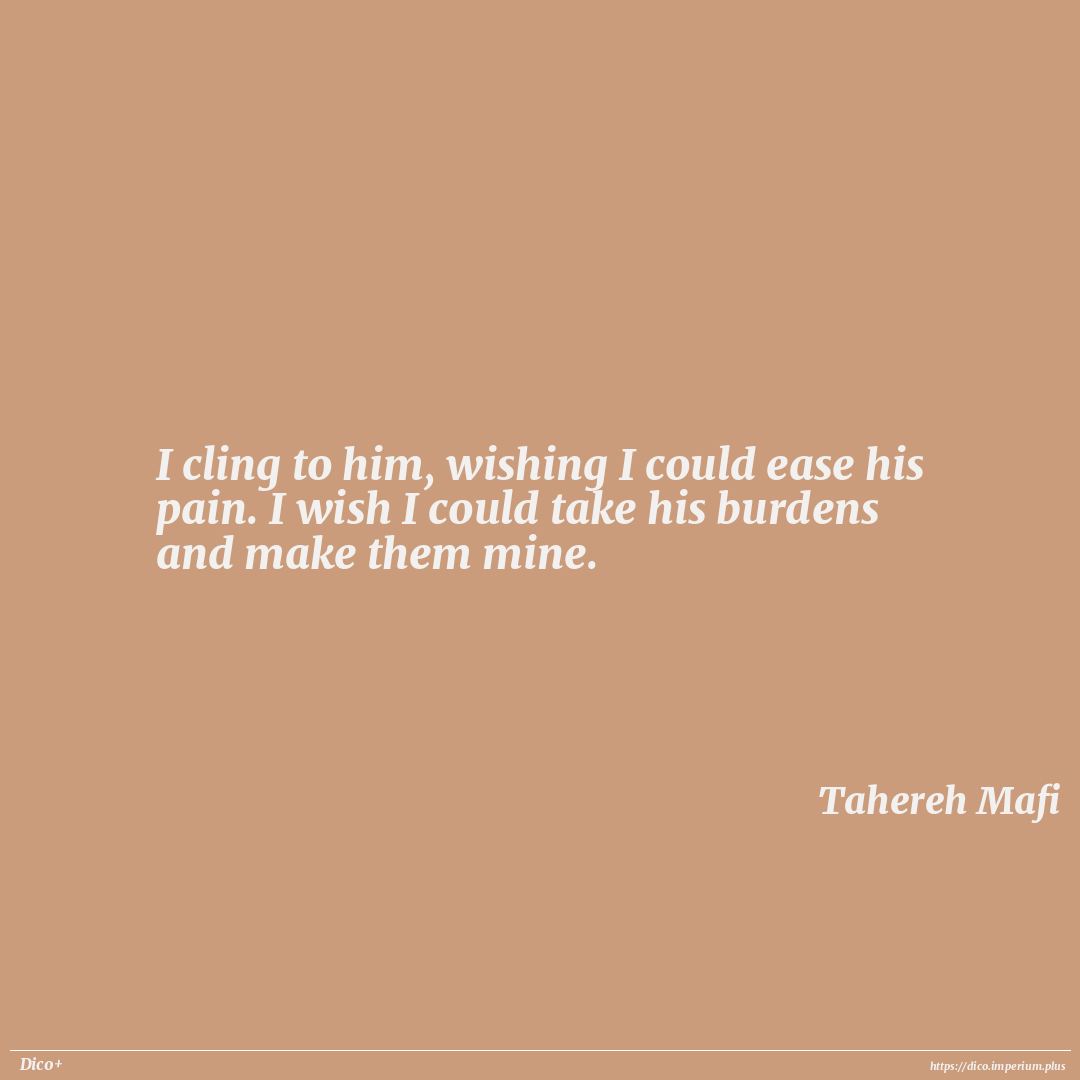 I cling to him, wishing I could ease his pain. I wish I could take his burdens and make them mine.