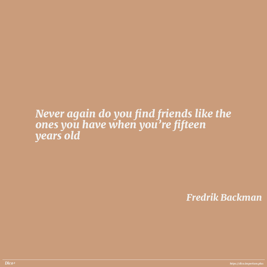 Never again do you find friends like the ones you have when you’re fifteen years old