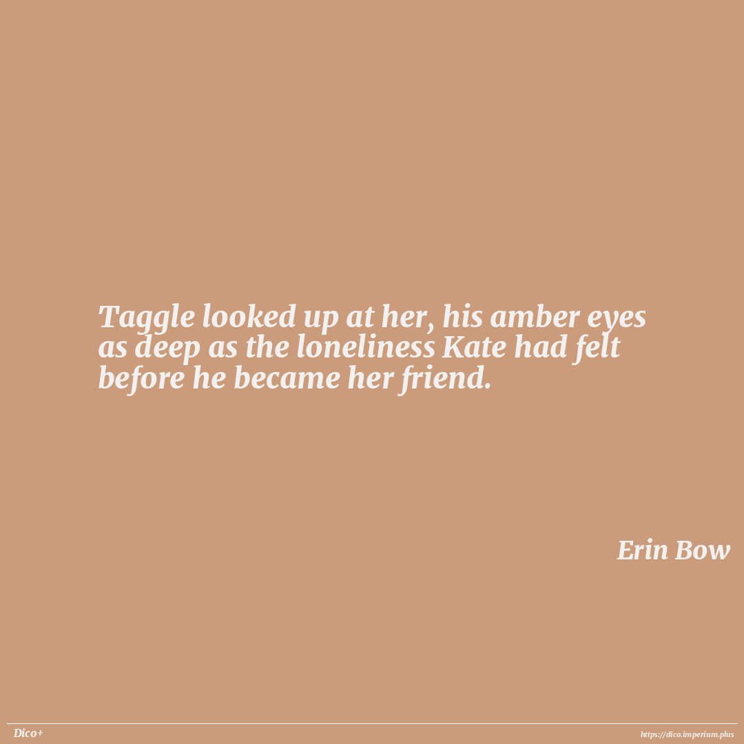 Taggle looked up at her, his amber eyes as deep as the loneliness Kate had felt before he became her friend.