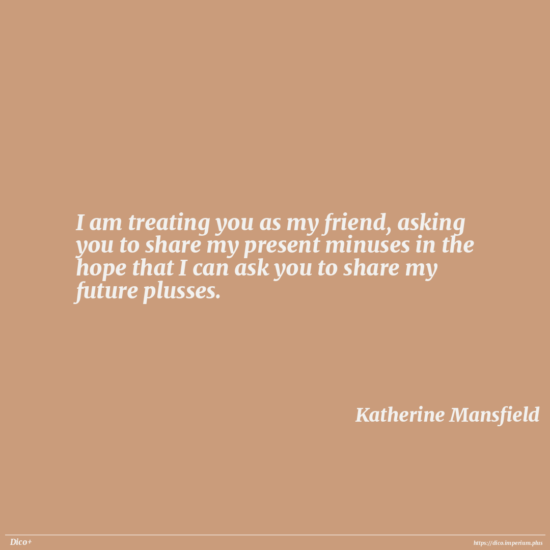 I am treating you as my friend, asking you to share my present minuses in the hope that I can ask you to share my future plusses.