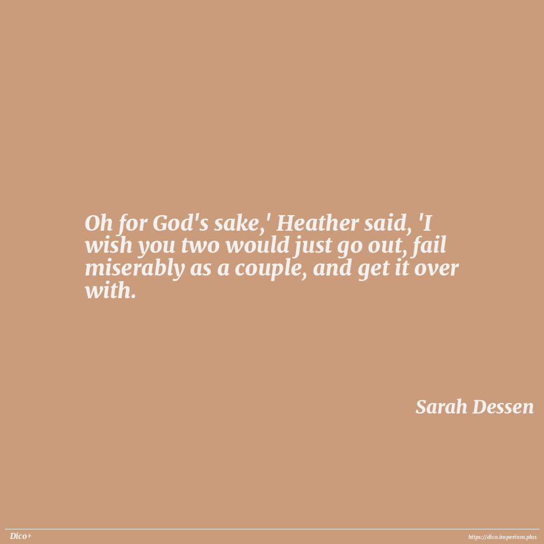Oh for God's sake,' Heather said, 'I wish you two would just go out, fail miserably as a couple, and get it over with.