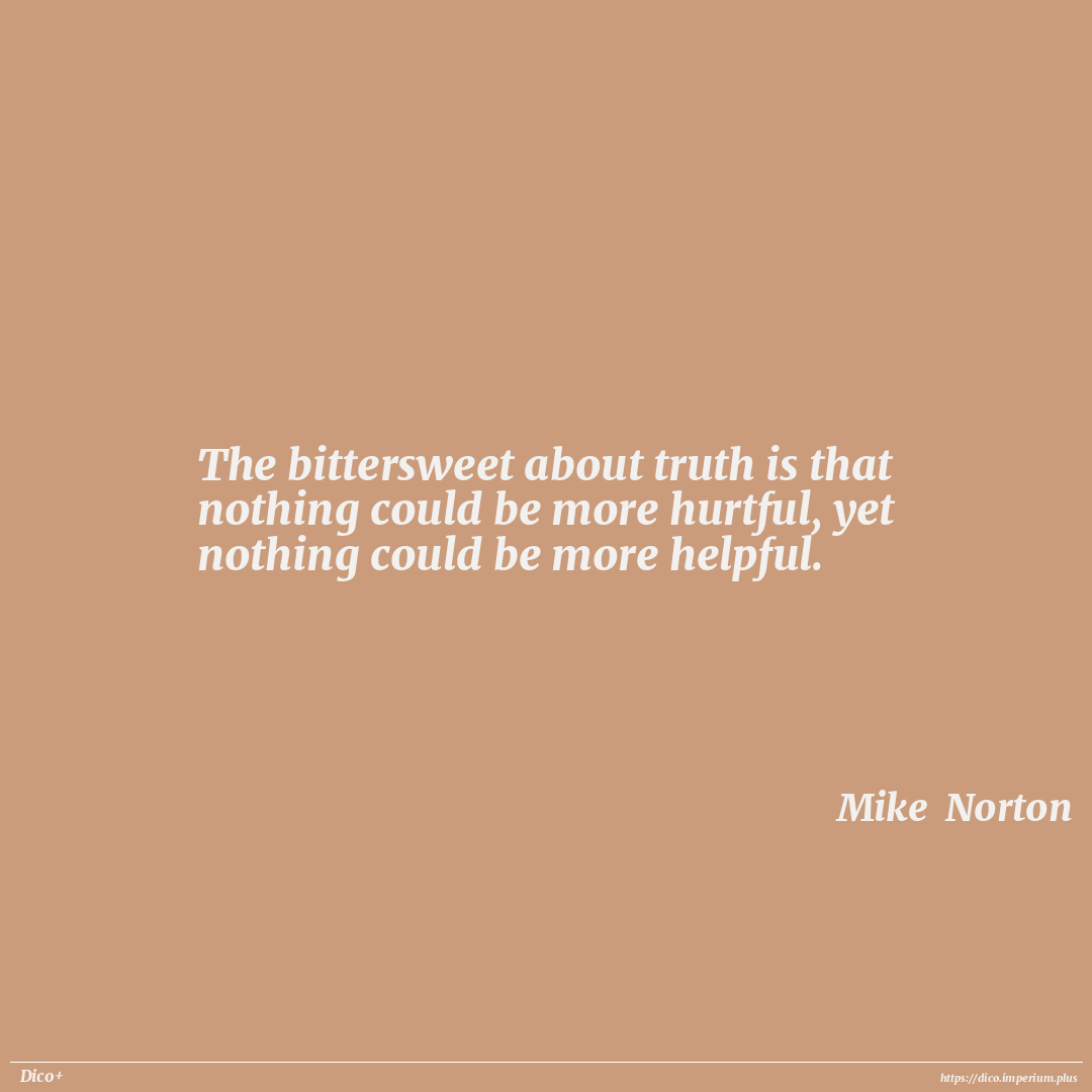 The bittersweet about truth is that nothing could be more hurtful, yet nothing could be more helpful.