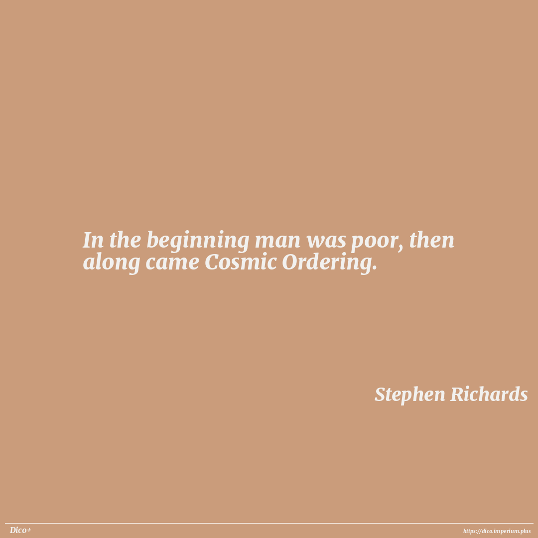 With Cosmic Ordering you can count your chickens before they have hatched.