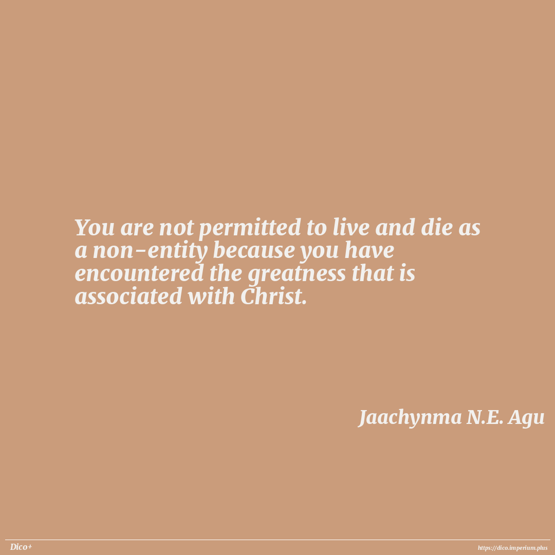 You are not permitted to live and die as a non-entity because you have encountered the greatness that is associated with Christ.