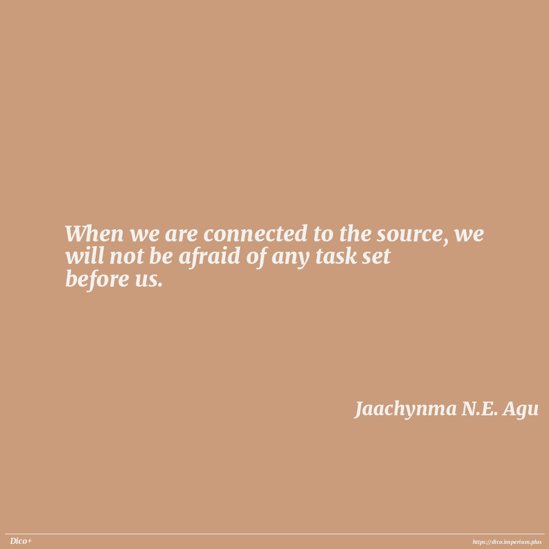 When we are connected to the source, we will not be afraid of any task set before us.
